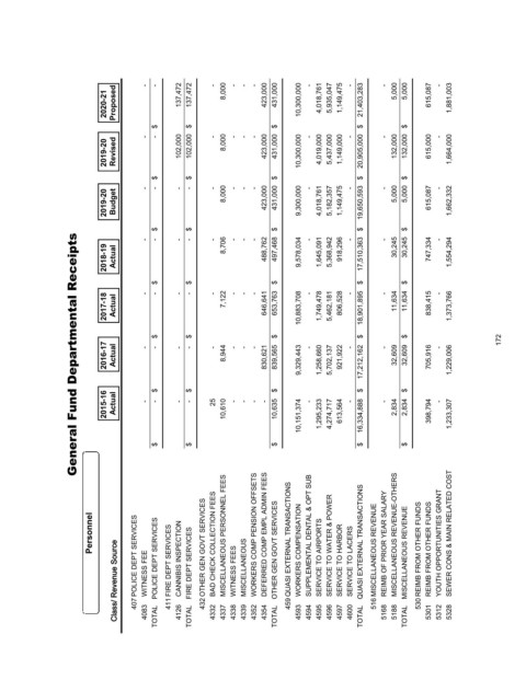 Personnel 432 OTHER GEN GOVT SERVICES BAD CHECK COLLECTION FEES MISCELLANEOUS PERSONNEL FEES WORKERS COMP PENSION OFFSETS DEFERRED COMP EMPL ADMIN FEES OTHER GEN GOVT SERVICES 459 QUASI EXTERNAL TRANSACTIONS WORKERS COMPENSATION SUPPLEMENTAL DENTAL & OPT SUB SERVICE TO WATER & POWER QUASI EXTERNAL TRANSACTIONS 516 MISCELLANEOUS REVENUE REIMB OF PRIOR YEAR SALARY MISCELLANEOUS REVENUE-OTHERS MISCELLANEOUS REVENUE 530 REIMB FROM OTHER FUNDS REI